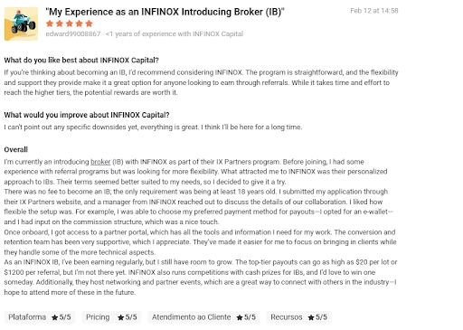 The INFINOX trading platform feedback about the IBs program tends to be positive. Here is a detailed review by a person who hopes to earn money on this activity for quite a long time. They accentuate the personalized approach and the ability to select the suitable banking option to receive the payments.