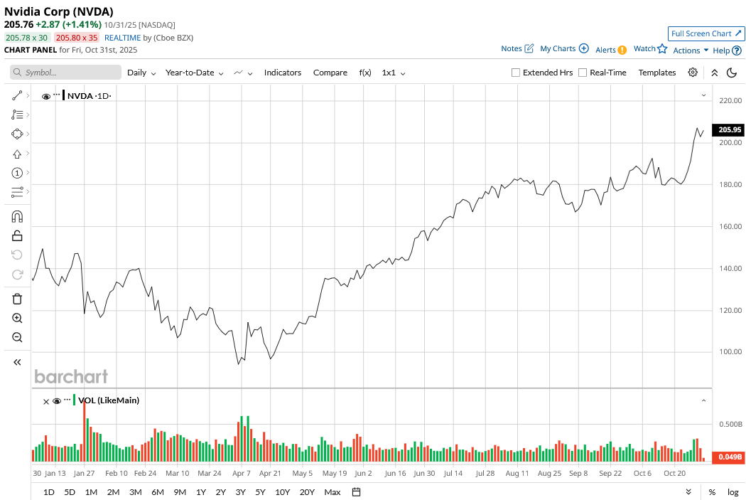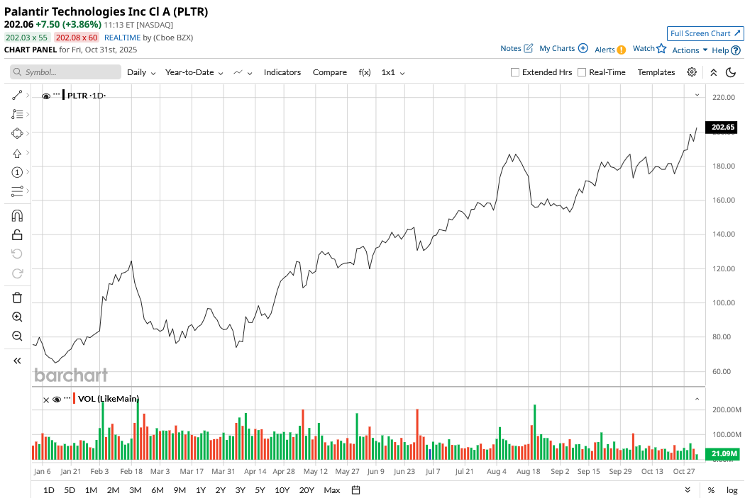 Finally, in terms of share price performance, there is a wide gap. While Nvidia is “just” up 54% on a year-to-date (YTD) basis, Palantir has rallied by 169% in the same period. However, comparing the share price performance of a company that became the first one in history to have a market cap of more than $5 trillion, as was the case with Nvidia recently, with a company whose market cap is close to one-tenth of it (Palantir's current market cap is $471.6 billion) is foolhardy.