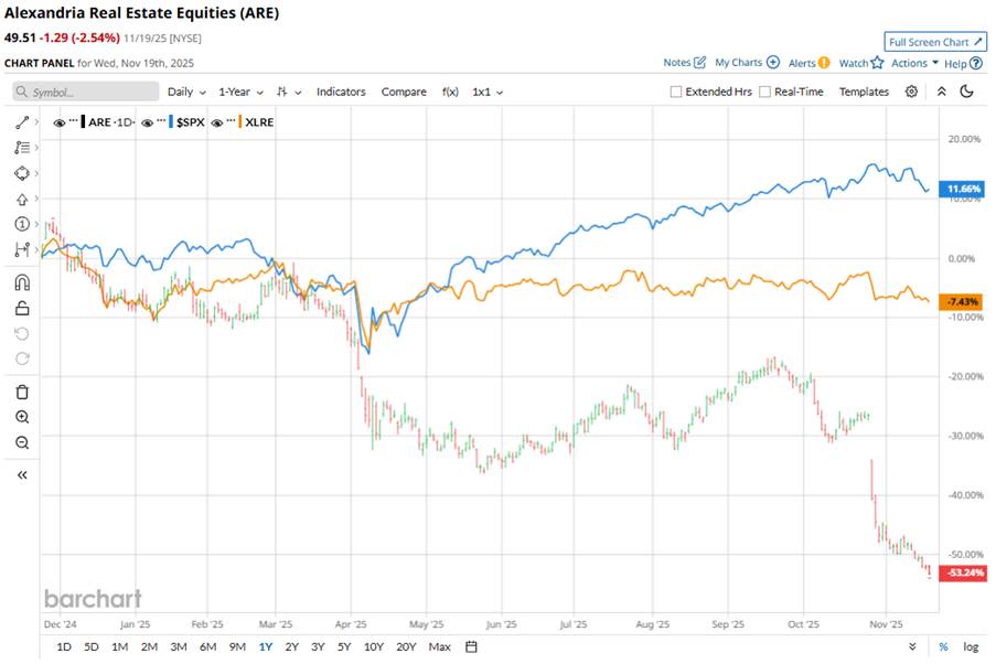 ARE stock is under pressure in 2025 largely because of rising macro and sector-specific headwinds. The life-science real estate market is grappling with oversupply and soft demand as R&D spending slows and vacancy rates jump. On top of this, policy risk looms as shifts in biotech funding and regulatory uncertainty are creating more cautious sentiment among ARE’s life-science tenants.