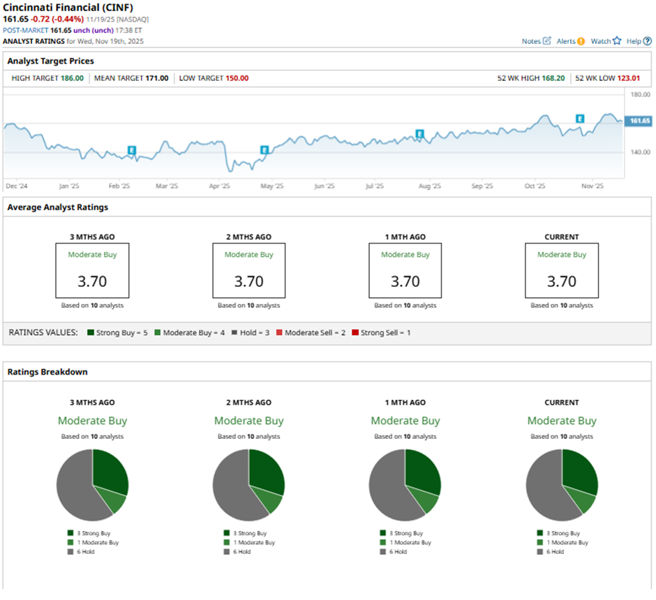 On Oct. 28, BofA analyst Joshua Shanker raised Cincinnati Financial’s price target to $186 and maintained a Buy rating.