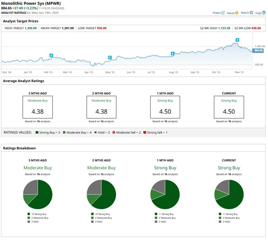On Nov. 2, Truist raised its price target on Monolithic Power to $1,163 while maintaining a “Buy” rating.