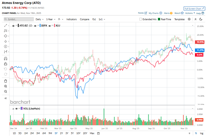 Zooming in further, ATO has surpassed the Utilities Select Sector SPDR Fund (XLU). The exchange-traded fund has gained 10% over the past year and 16.9% in 2025.