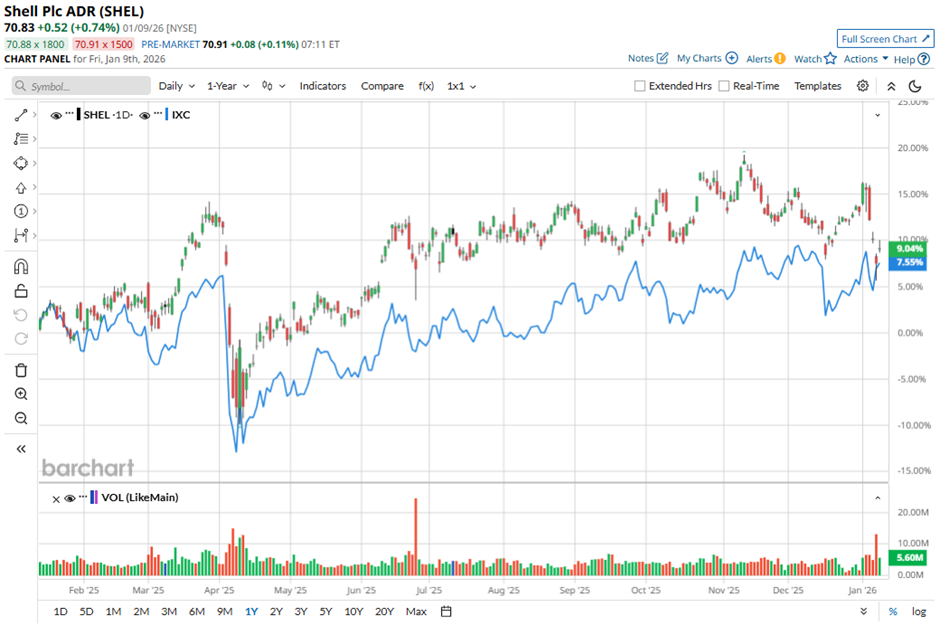 Currently valued at a hefty market capitalization of about $203.65 billion, the European energy giant has delivered a decent run in 2025, with shares up 10.35%. That performance even edges out the broader energy sector. For comparison, the iShares Global Energy ETF (IXC) has gained 8.74% over the same period, showing that Shell is quietly pulling ahead of the pack.