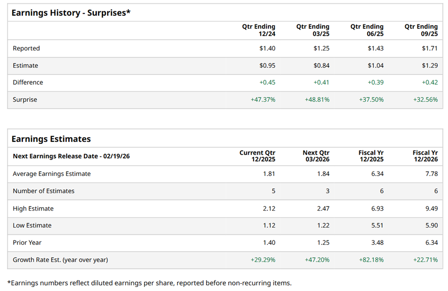 Newmont Corporation (NEM), headquartered in Denver, Colorado, acquires, explores, and develops mineral properties. Valued at $124.5 billion by market cap, the company produces and markets gold, copper, silver, zinc, and lead. The world’s leading gold company is expected to announce its fiscal fourth-quarter earnings for 2025 after the market closes on Thursday, Feb. 19.