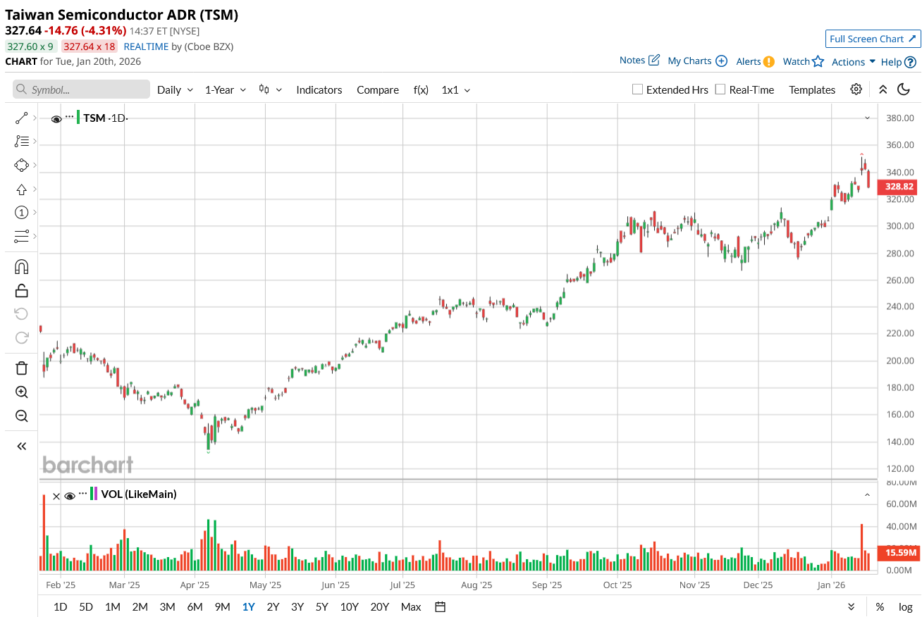 Last Thursday, U.S.-listed shares of Taiwan Semiconductor Manufacturing jumped over +4% after the company posted a record Q4 profit, projected faster-than-expected 2026 revenue growth, and provided blockbuster capital expenditure guidance for this year.