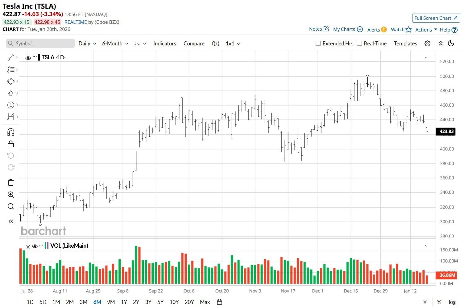 Tesla (TSLA) shares are trending down on Jan. 20 after the company’s chief executive, Elon Musk, started a poll on X asking whether he should buy Ireland-based Ryanair (RYAAY).