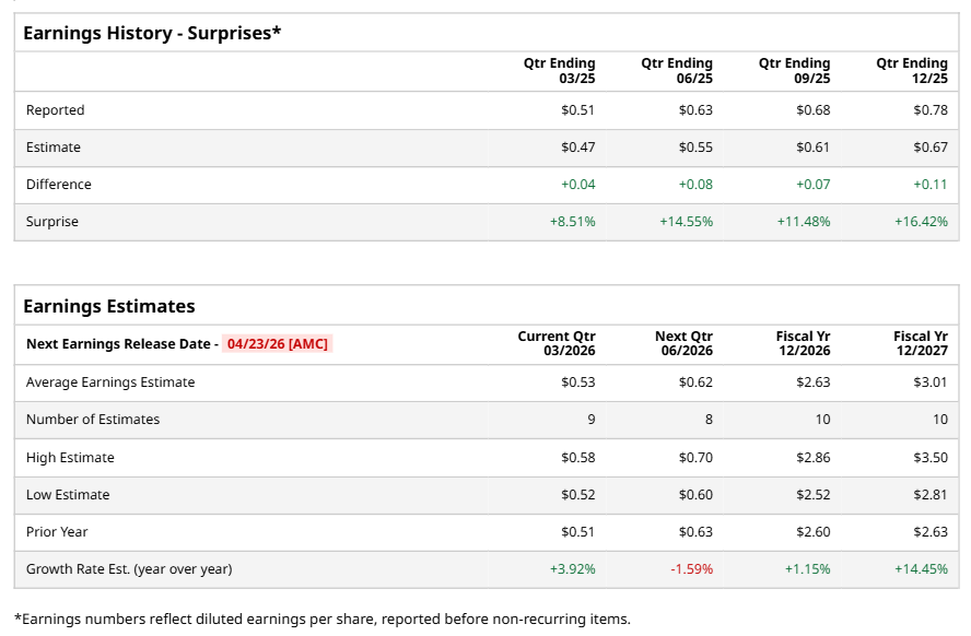 Houston, Texas-based Baker Hughes Company (BKR) provides oilfield products, services, and digital solutions. Valued at $60.3 billion by market cap, BKR is one of the world's largest oilfield service providers offering drilling, well intervention, decommissioning, surface pressure control, onshore composite pipe, reservoir technical, and integrated well services. The leading energy technology company is expected to announce its fiscal first-quarter earnings for 2026 after the market closes on Thursday, Apr. 23.