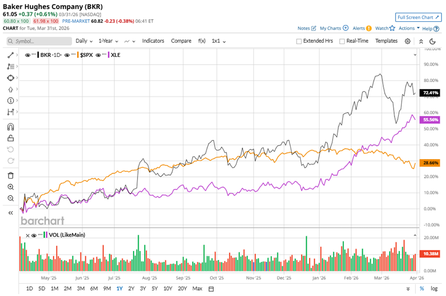 BKR stock has outperformed the S&P 500 Index’s ($SPX) 17% gains over the past 52 weeks, with shares up 41.7% during this period. Similarly, it outperformed the State Street Energy Select Sector SPDR ETF’s (XLE) 32.6% gains over the same time frame.