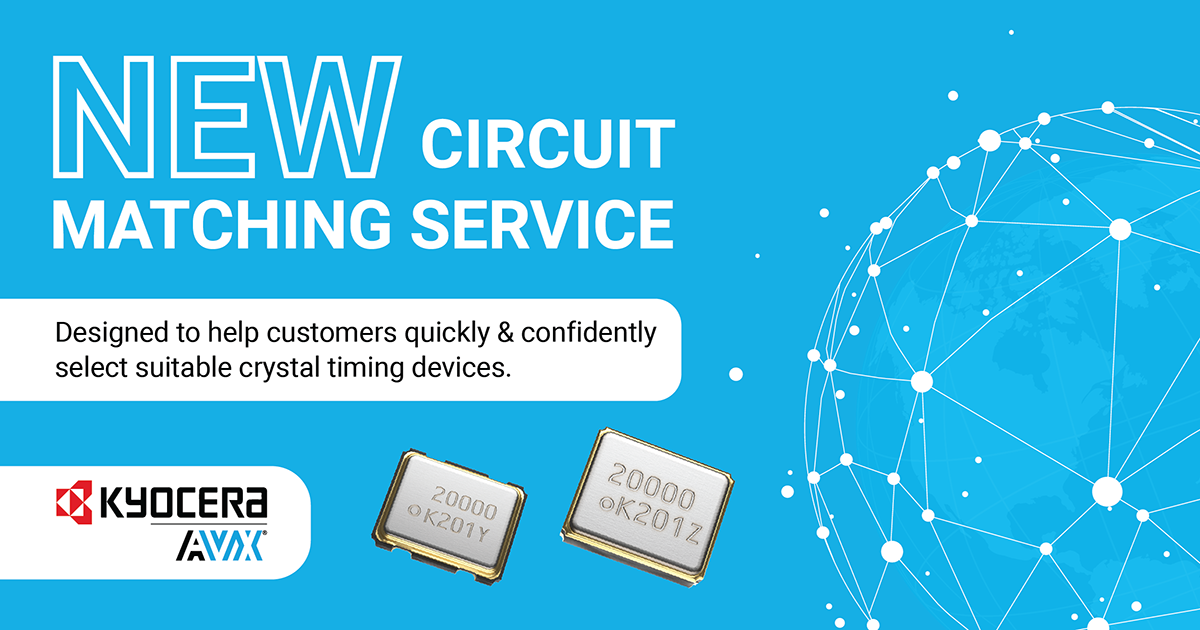 FOUNTAIN INN, S.C., Feb. 13, 2023 (GLOBE NEWSWIRE) -- KYOCERA AVX, a leading global manufacturer of advanced electronic components engineered to accelerate technological innovation and build a better future, has introduced a new circuit matching service designed to help customers quickly and confidently select suitable crystal timing devices.