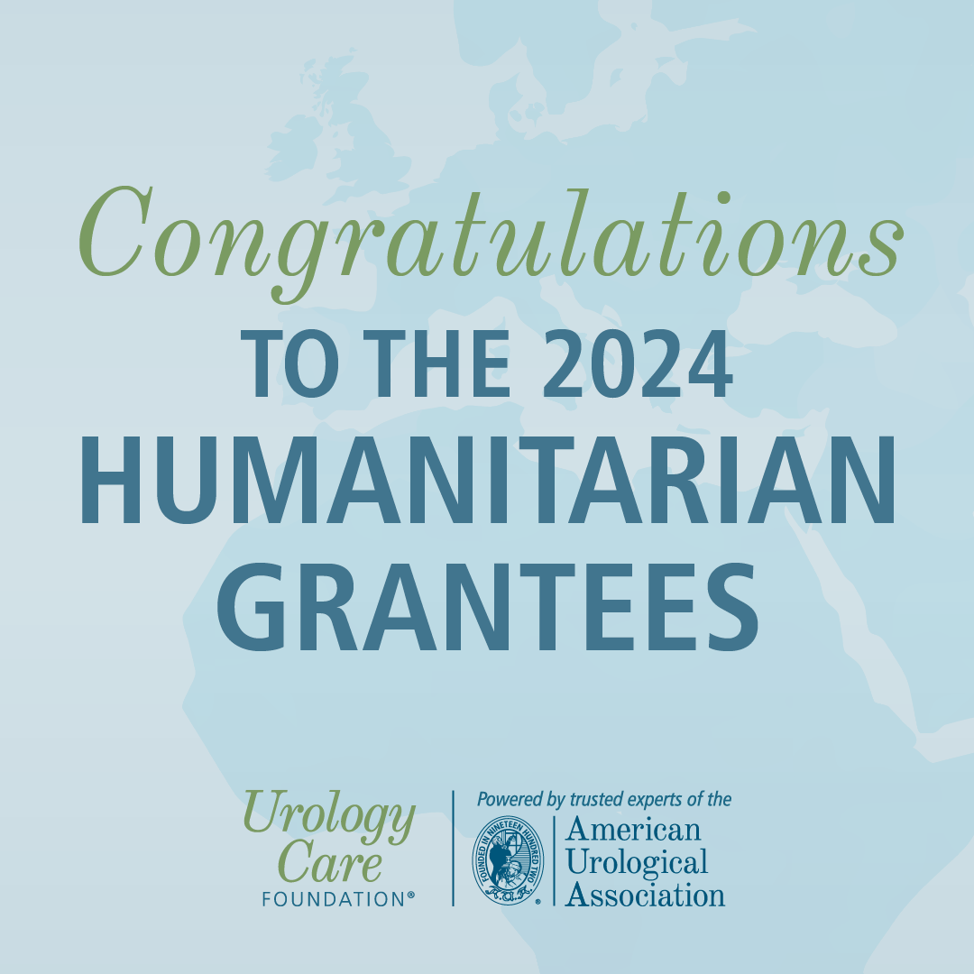 Grants were made possible through funds from the American Urological Association Humanitarian Endowment, the Amerson Family Humanitarian Endowment, the Richard J. Fox Foundation Humanitarian Endowment, the Nathirmal N. Lalchandani Humanitarian Endowment, the Endourological Society Raju and Ginny Thomas Humanitarian Endowment, the Indian American Urological Association Humanitarian Endowment, the Nawazish Ali Mian Family Endowment, the Society of Urodynamics, Female Pelvic Medicine & Urogenital Reconstruction, the Southeastern Section of American Urological Association & Puerto Rico Urological Association, and other contributors.