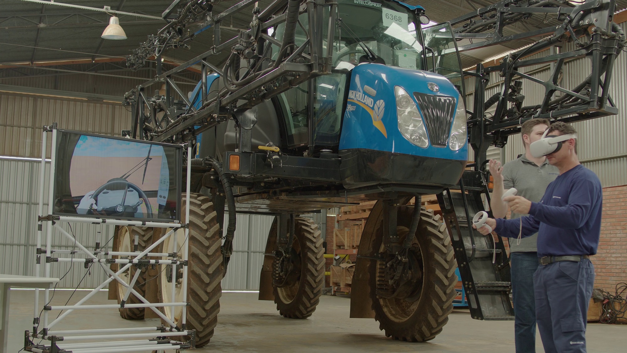 Among the resources used by CNH for training are cab simulators, which use the actual cab of the machines to simulate activities via virtual reality headsets.