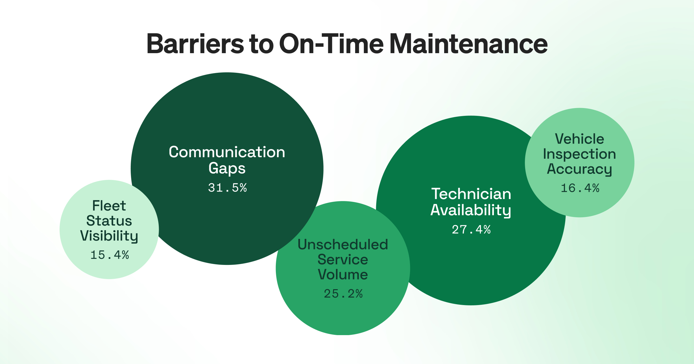 - The top reasons maintenance falls behind are coordination and capacity. Respondents cite communication gaps (31.5%), technician availability (27.4%), and unscheduled service volume (25.2%) as the most common barriers to on-time maintenance, reflecting organizations strained by complexity and time constraints.