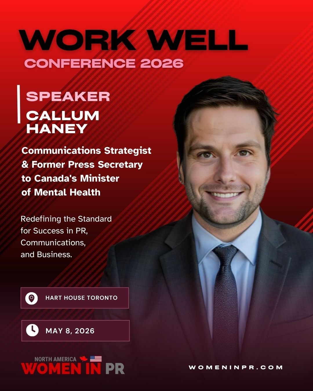 "Spending years advising on some of Canada's most sensitive files gave me a front-row seat to what high-stakes communications demands of the people doing it. The Women in PR North America WorkWell Conference is a rare opportunity to bring that perspective into a room full of practitioners who are asking the same questions. That conversation is important and I am honoured to help lead it," said Callum Haney.