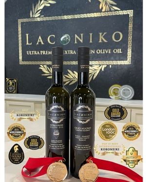 Laconiko is a fourth-generation family business producing high quality award-winning extra virgin olive oils, with a heavy emphasis on maximizing their health promoting properties. With an exceptional collection of fruit vinegars, and balsamic vinegars sourced from family farms. Their olive oils are crafted exclusively from Koroneiki and Kalamata olive varietals grown on the family estate in Lakonia, Greece, Laconiko's oils are celebrated for their purity, flavor, and exceptionally high quality.