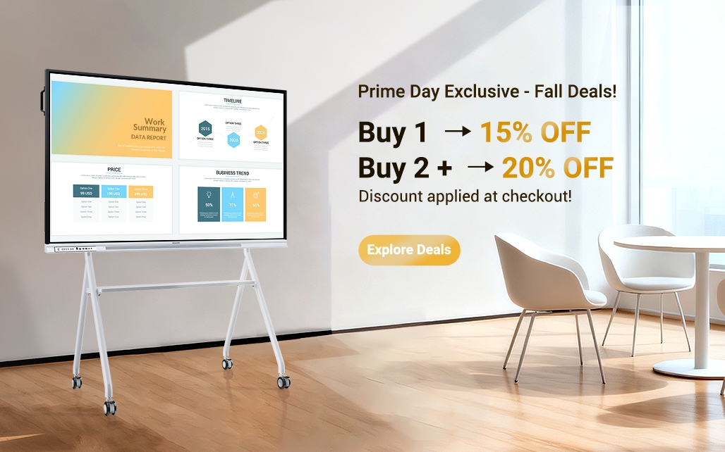 Nework is launching a special Prime Day discount, offering 15% off when purchasing one unit and 20% off for two units or more—saving up to $500 per smart board.