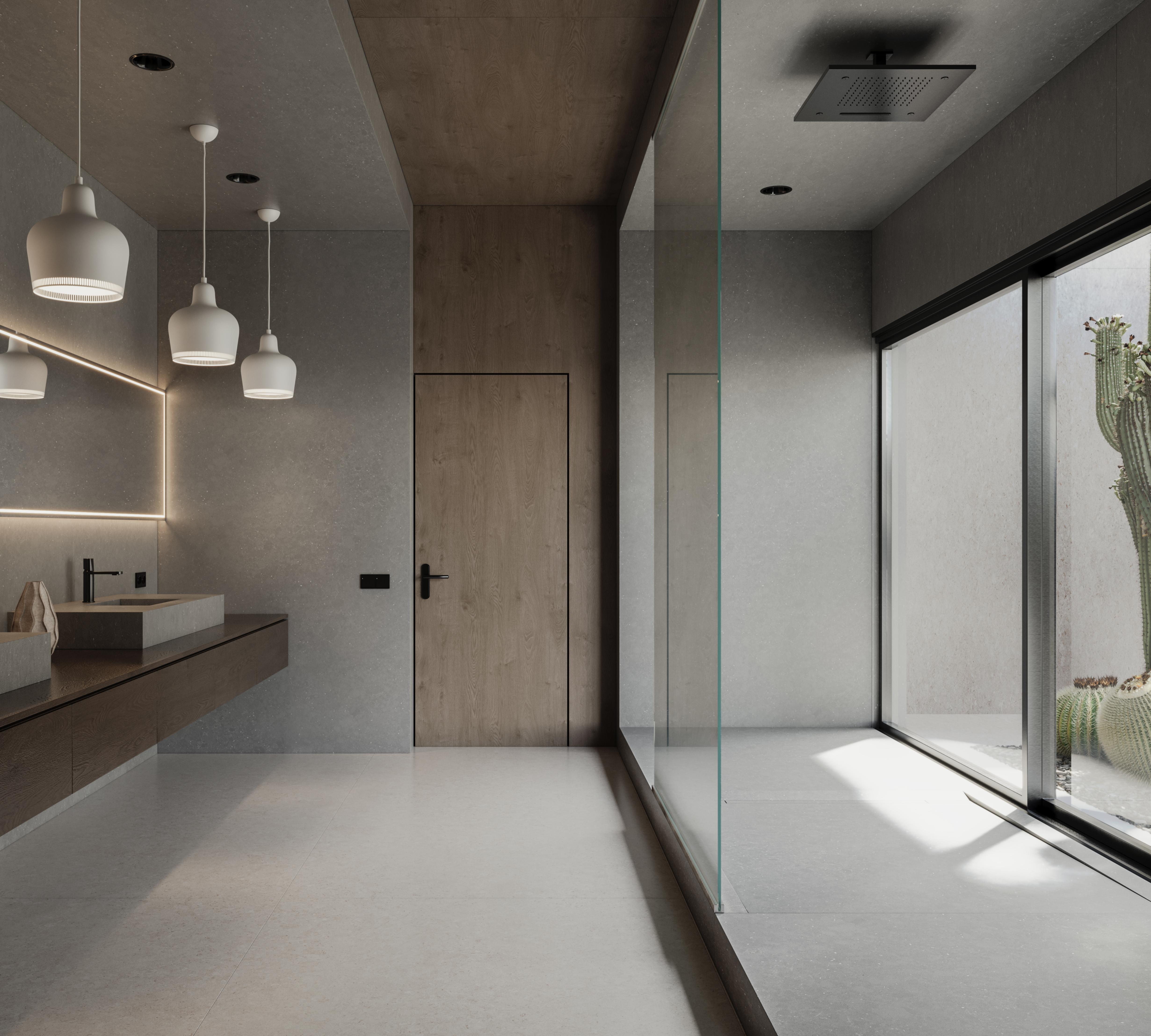 RAW G: A serene and natural concrete canvas with subtle copper touches intertwined with nebulous veins that add a sense of fluidity.
