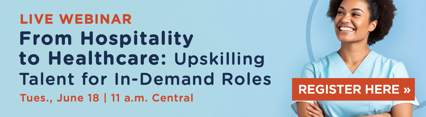 Healthcare employers across the U.S. are feeling the pain from an understaffed, undertrained, and overworked workforce. This live webinar is titled "From Hospitality to Healthcare: Upskilling Talent for In-Demand Roles" and will feature a panel of industry experts, including Jessica Langley-Loep, MS, executive director of education and advocacy at NHA, Jake Gleghorn, chief strategy officer at New Orleans Career Center, and Jenna Fisher, vice-president of clinical excellence at Healthcare Workforce Solutions, Ascend Learning.