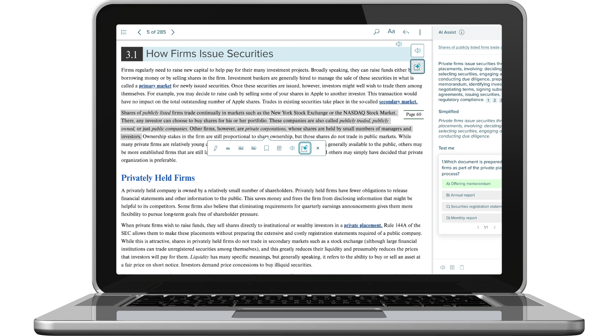 Embedded in McGraw Hill’s eBook reading experience for college students, AI Reader lets students highlight specific text and ask for alternative explanations, simpler language or a quick quiz to test their knowledge. The AI Reader tool was designed to create more flexible, inquiry-based learning experiences that build deeper understanding of content through a more hands-on and active approach.