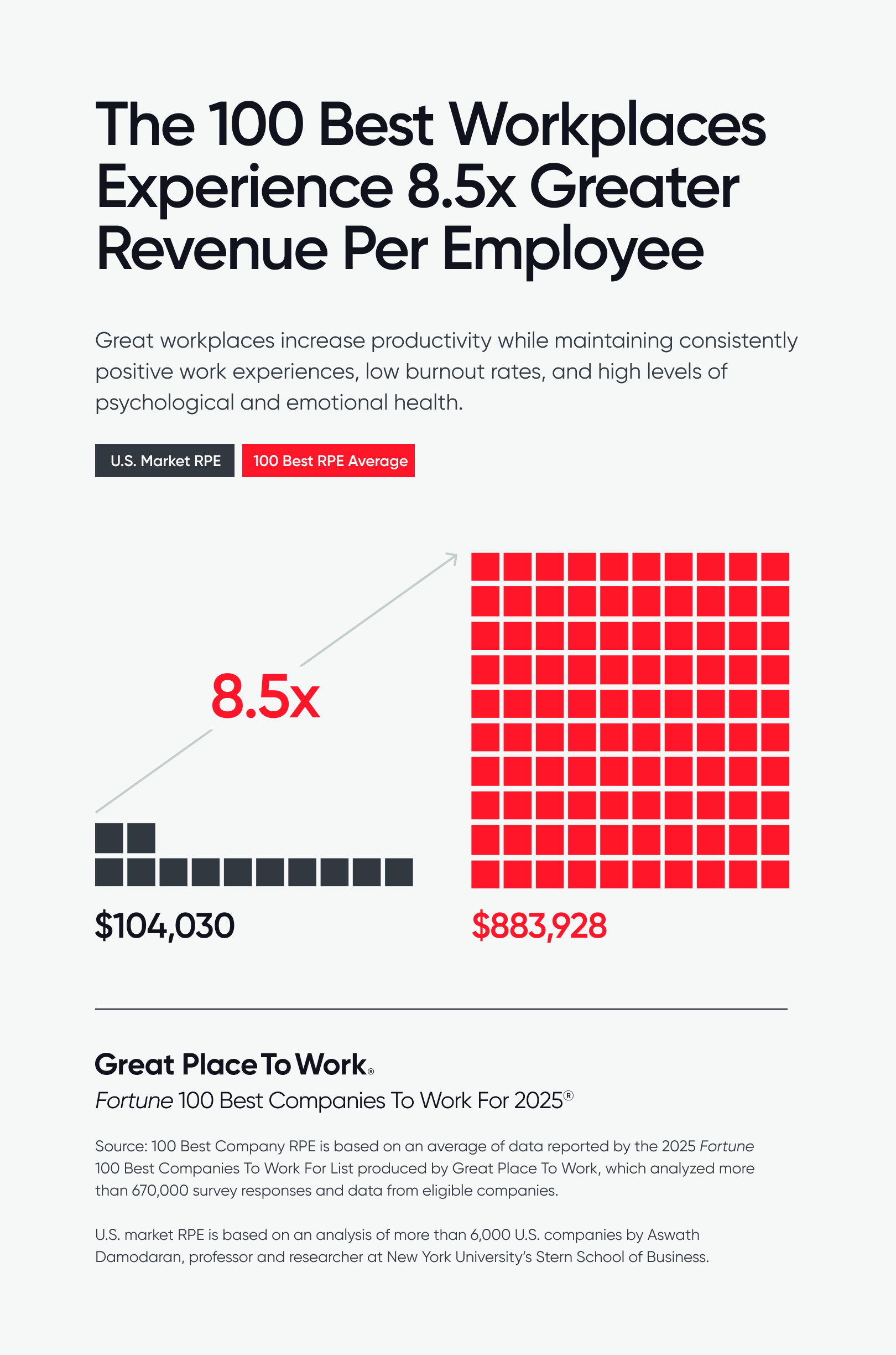- The 100 Best Workplaces Experience 8.5x Greater Revenue Per Employee