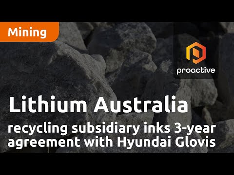 Lithium Australia CEO and managing director Simon Linge joins Jonathan Jackson in the Proactive studio to discuss recent developments with Lithium Australia's subsidiary, Envirostream, which has inked a three-year agreement with Hyundai Glovis to provide battery recycling services in Australia.